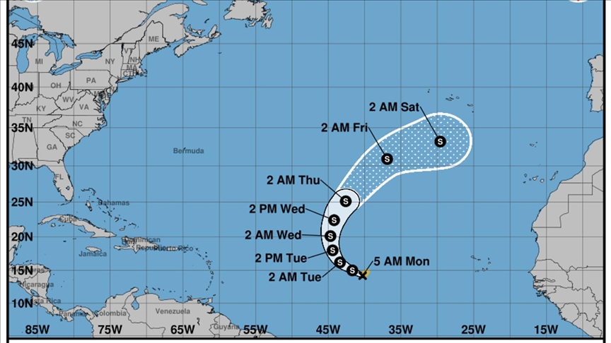 ABD Ulusal Kasırga Merkezinden yapılan açıklamada, tropik fırtınanın, Atlas Okyanusu’nda Cabo Verde’nin yaklaşık 1762 kilometre batısında bulunduğu ve rüzgar hızının saatte 72 kilometreye çıktığı belirtildi.