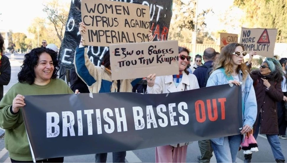 Eylemciler, adadaki yabancı askeri varlığın Kıbrıs’ı bölgesel çatışmaların hedefi haline getirdiğini savunarak İngiliz üslerinin kapatılmasını ve ülkenin askeri operasyonlarda kullanılmamasını talep etti.